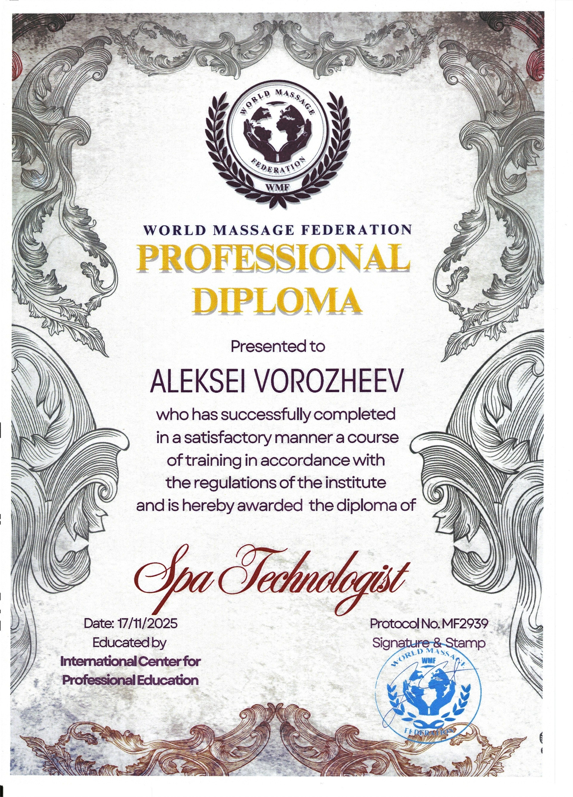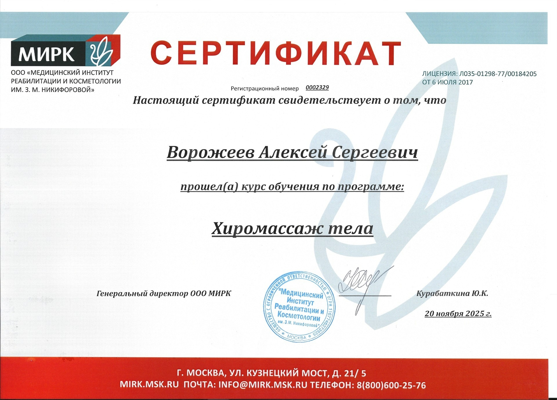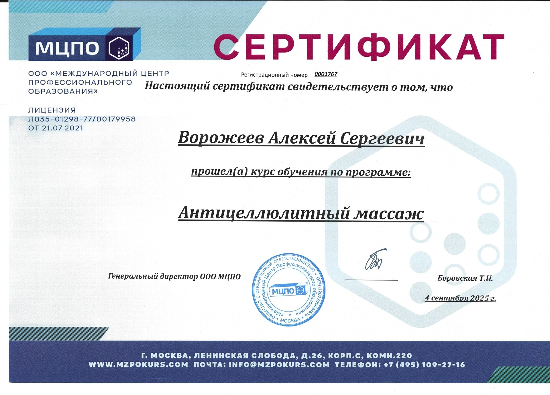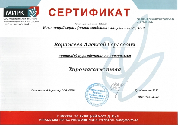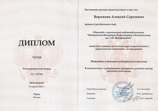 Дипломы и сертификаты студии массажа ALEXBERRY